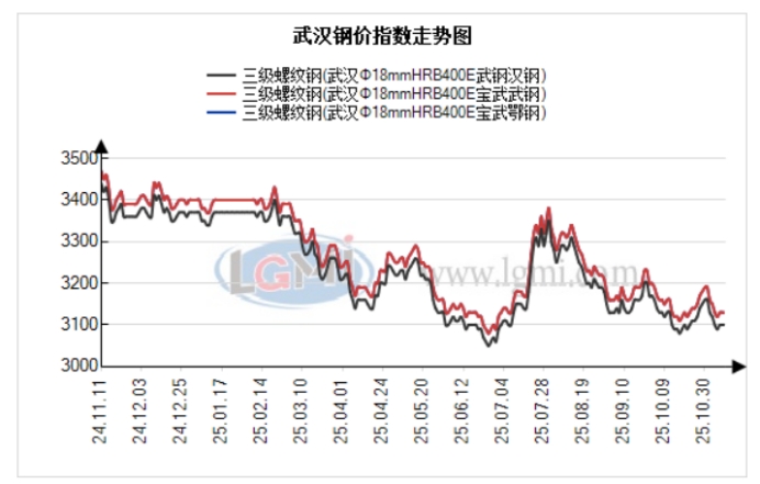 今日武汉建材现货价格持稳。据兰格钢铁研究中心监测显示:截至11月11日,武汉建材市场HRB400EΦ18mm螺纹钢宝武鄂钢3130元,宝武武钢3130元,武钢汉钢3100元。