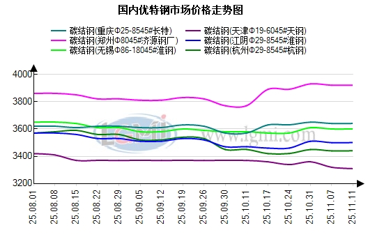 钢厂方面:今日常州东方优特钢出厂价格持稳运行,现45#碳结钢出厂3650元;杭钢优特钢日定价圆钢价格持稳运行,现45#碳结钢出厂3530元,以上均为含税价格;临沂钢投优特钢出厂格持稳运行,现45#碳结钢出厂3370元;天钢优特钢出厂价格持稳运行,现45#碳结钢出厂3290元。目前优特钢企业早间偏稳居多,厂家们部分维持观望,成交仍无明显改善。