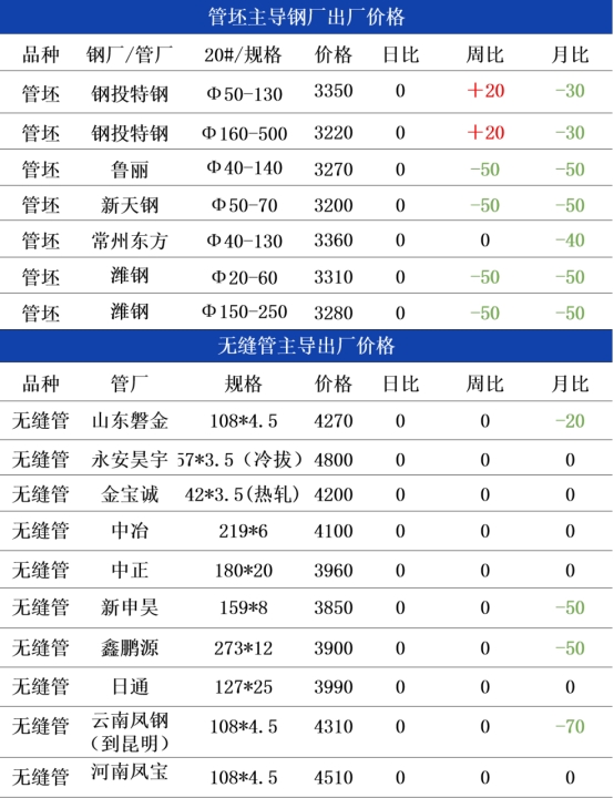 管坯:昨日黑色期货震荡运行,南北管坯价格持稳,当前市场仍由刚性需求主导,市场商户心态偏空,观望情绪浓厚,商家心态趋于保守,主要依赖消化前期库存,且对后市预期偏向利空。目前基本面韧性不足,但终端需求持续走弱,价格缺乏持续上涨的动力,短期需要关注宏观和原料端对于价格的影响,综合来看,预计今日管坯价格持稳运行。