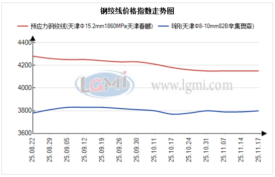 行情分析:今日黑色商品行情有整体向下趋势。昨日黑链的分化态势继续延续,各品种彼此牵制,且黑链重心整体小幅下移,但依然未能走出震荡区间。现货方面,今日天津地区 φ15.2mm 预应力钢绞线主流出厂价持稳,进入11月中下旬后,市场需求端持续萎缩,北方部分地区施工已进入尾声,出货主要以南下为主,且成交量环比持续小幅下滑。终端采购依旧以按需补库为主,厂商生产也偏谨慎,仅以实际订单进行排产,实际产量持续小幅下降。库存方面,各厂商库存始终维持动态平衡,厂商库存管理持续谨慎状态。原材料B钢今日价格持稳,辛集澳森出厂价报3460元。综合来看,当前天津钢绞线市场依然处于供需弱平衡的博弈格局。短期而言,下游需求还将延续疲软状态,产销量均维持低位运行,预计明日天津钢绞线市场行情可能为主稳状态。