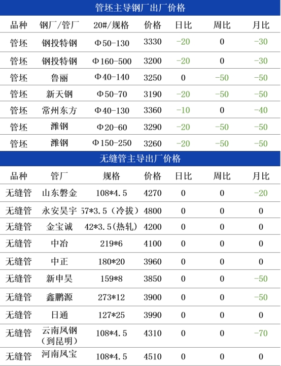 市场反馈,当前多数资源缺规格现象仍较为突出,供给端压力尚可,整体市场挺价情绪仍存。当前行业核心矛盾仍聚焦于成本端压力与供需双向疲软的现实格局,宏观面缺乏新的刺激,国内政策处于真空期,压制无缝管价格上行空间。基本面上,供需暂没有积累大的矛盾,价格深跌的可能性不大。预计今日无缝管价格持稳运行为主。