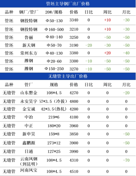 管坯:昨日全国地区管坯市场整体承压,市场价格弱稳运行。南北管坯价格均下调10元,期货盘面震荡运行,市场情绪一般,部分区域价格松动叠加成交下滑,反映出当前供需矛盾不突出但需求端略显乏力贸易商为了促进成交,议价空间仍存,商家普遍采取低库存模式,以降低滞销风险,若下游需求无显著改善,预计今日管坯价格偏弱运行。