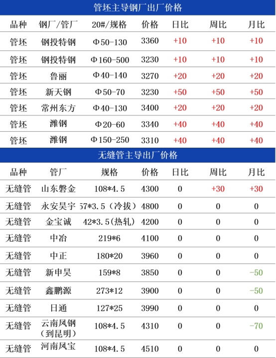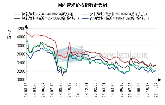管坯:昨日全国管坯价格上涨10-30元,价格上涨主要受成本与供应端支撑,焦炭、铁矿石等原料价格高位运行推升生产成本,叠加 12 月多家钢厂检修减产导致市场库存下降,以及黑色系期货反弹提振市场看涨预期,厂商挺价意愿较强。但是成交端表现平淡,下游管厂多按需采购,对高价资源接受度偏低。贸易商与终端企业观望氛围浓厚,不盲目囤货,目前成本支撑与需求疲软将持续博弈,预计今日管坯价格继续偏强运行。