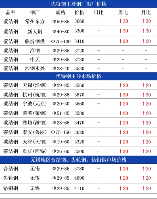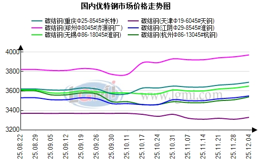 钢厂方面:今日常州东方优特钢出厂价格持稳运行,现45#碳结钢出厂3650元;杭钢优特钢日定价圆钢价格上调20元,现45#碳结钢出厂3590元,以上均为含税价格;临沂钢投优特钢出厂格持稳运行,现45#碳结钢出厂3410元;天钢优特钢出厂价格持稳运行,现45#碳结钢出厂3300元。早盘优特钢日定价钢企价格多持稳,目前终端需求疲软,无大量采购推动涨跌;二是多地钢厂有检修计划,供给收缩缓解库存压力,减少降价动力,基本面处于弱平衡状态,故价格多企稳。