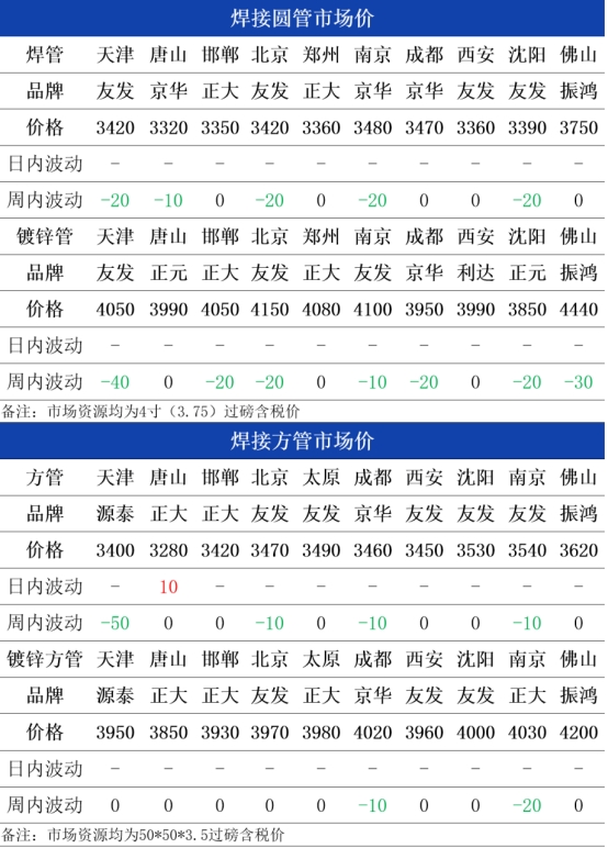 昨日早间,现货供需仍处于相互试探状态。上游钢厂部分资源仍然松动接单,焊镀管厂商价格维持灵活低位,中下游采购回归正常,低价资源出货顺畅。盘中消息面有传地方购房贴息等政策,万科股市直接冲击涨停,受此影响,期货得以止跌拉涨,现货带钢厂商追涨氛围热烈,市场信心得以明显提振,焊镀管厂商试探跟调。而涨后中间商没有追高采购,市场交易有所降温,价格高挂与交易放缓现象共存。统计各地市场焊镀管出货总体增加,而南方区域多仍围绕低位交易为主、表现一般。综合来看,关于经济会议的政策预期有一定修复,不过此前部分城市已针对性执行小额贴息、补贴等政策,后续是否扩大范围或力度,仍需关注具体落实。夜盘盘面资金多空势头收敛,期现暂时再一次进入震荡区间。预计国内焊镀管市场随行盘整,出货为主。
