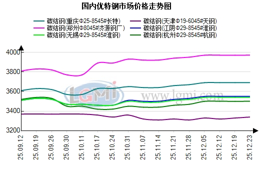钢厂方面:今日常州东方优特钢出厂价格持稳运行,现45#碳结钢出厂3690元;杭钢优特钢日定价圆钢价格持稳运行,现45#碳结钢出厂3610元,以上均为含税价格;临沂钢投优特钢出厂格持稳运行,现45#碳结钢出厂3380元;天钢优特钢出厂价格持稳运行,现45#碳结钢出厂3300元。目前国内优特钢厂库存压力可控,下游刚需采购持续,无需通过调价刺激成交;叠加期货盘面震荡维稳,市场情绪理性,钢企顺势维持出厂价稳定。