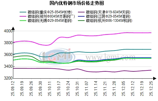 25日国内优特钢市场价格主稳运行,据兰格钢铁云商平台监测数据显示,国内重点城市45#碳结钢85mm平均报价3642元,较上一交易日持稳运行;40Cr合结钢85mm平均报价3797,较上一交易日持稳,主要主导城市价格如下:Φ80-130mm45#杭州3570元;常州3490元;重庆3690元;天津3420元,以上主导城市较上一交易日持稳。
