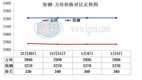 1月5日角钢3270,角-坯价差340,较上一交易日持平。