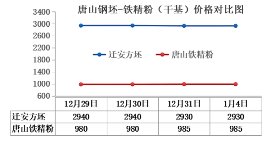 1月4日铁精矿(65-60品位干基)985,较上一交易日稳。