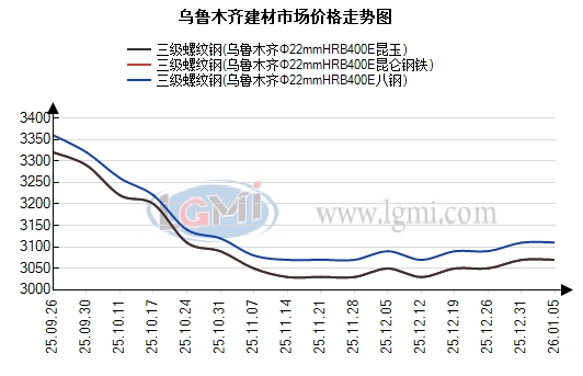根据兰格钢铁云商平台监测数据显示,以乌鲁木齐为例,截至2025年1月5日,乌鲁木齐建材市场HRB400EΦ22mm螺纹钢八钢3110元,昆仑钢铁3070元,昆玉3070元,闽新3070元,大安3060元,新安特3060元,和钢3070元,较上个交易日持稳;HB300Φ8-10mm高线八钢3260元,较上个交易日持稳;HRB400EΦ8-10mm三级盘螺八钢3310元,较上个交易日持稳。