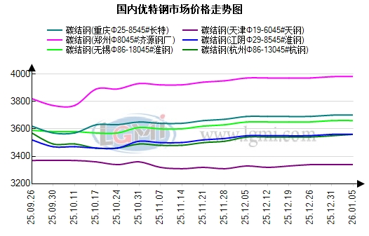 市场方面:昨日国内优特钢市场情绪稳健审慎,贸易商调价积极性呈现分化态势,除杭州区域跟随钢厂调价小幅跟涨外,其余各地均以稳价出货为核心思路,未出现大范围波动。据兰格钢铁网数据显示,昨日全国优特钢市场价格以稳为主,仅杭州杭钢相关资源出现小幅异动:杭州市场杭钢45#碳结钢主流规格含税报价较前一交易日上行10元;其余各地区各品种报价均锚定前期价格区间。分地区来看:华东地区呈现“局部微调、整体平稳”格局,无锡市场45#碳结钢主流规格含税报价与前期持平,贸易商以明价走货为主;杭州市场受杭钢调价带动,局部资源跟涨意愿明确,但未引发全品类联动,轴承钢、齿轮钢等高端品种报价延续坚挺,交投节奏平缓。华北、华中地区优特钢市场未受华东局部调价传导影响,全程持稳运行。华北区域碳合结钢报价框架坚实,市场流通资源充裕,无低价货源冲击;华中区域等品种代理挺价立场坚定,报价无任何波动。目前贸易商操作策略呈现区域性差异,兼顾库存周转与资金安全,无主动博弈市场的激进操作。综上,当前市场缺乏趋势性上行动能,供需基本面仍处于弱平衡状态。预计今日国内优特钢市场延续主稳格局。