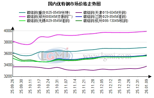市场方面:上周末国内优特钢市场整体呈现平稳运行态势,无明显单边波动迹象,贸易商调价动力全面不足,全域均以稳价守市为核心思路,仅极个别稀缺规格保留微量议价空间,市场报价体系坚实稳固,为今日市场运行奠定平稳基础。分地区来看:华东地区无锡、杭州两大核心市场同步持稳,碳结钢主流规格含税报价较上周水平持稳;轴承钢、齿轮钢等高端品种报价延续坚挺态势,资源供应偏紧格局未改,无让利操作空间,交投节奏保持平稳。华北、华中地区优特钢市场同步维持平稳运行,未出现区域分化迹象。碳合结钢报价框架稳固,市场流通资源充裕,无低价货源干扰市场秩序;齿轮钢主流规格报价 及轴承钢等品种代理挺价立场坚定,报价无任何松动,区域市场运行有序。贸易商操作思路趋于统一,均以 “稳价去库、按需流转” 为核心,聚焦库存结构优化与资金回笼效率,无主动调价博弈市场的行为,多以贴合实际成交的报价承接订单;下游制造企业采购心态理性,完全遵循 “按需补库” 原则,周末成交以刚需小单为主,批量备货意愿依旧温和,询单频次维持常态水平,无集中补库动作,整体交投氛围平淡有序。综上,目前优特钢市场供需基本面维持弱平衡状态。预计今日国内优特钢市场仍将延续持稳格局,成交继续以按需为主导。