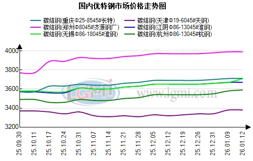 钢厂方面:今日常州东方优特钢出厂价格持稳运行,现45#碳结钢出厂3720元;杭钢优特钢日定价圆钢价格持稳运行,现45#碳结钢出厂3650元,以上均为含税价格;临沂钢投优特钢出厂格持稳运行,现45#碳结钢出厂3390元;天钢优特钢出厂价格持稳运行,现45#碳结钢出厂3290元。早盘日定价钢企多持稳观望运行,后续跟随成交窄幅调整出厂价格。早盘日定价钢企端多持稳运行,观察今日成交后午后再行调整出厂价格。