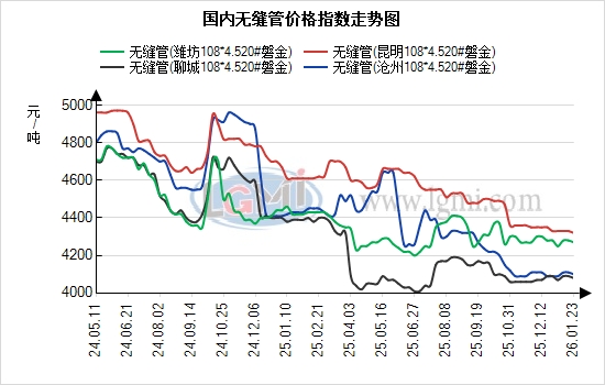 市场交易方面,周末受寒潮天气及节前氛围影响,终端需求持续疲软,北方户外施工全面停滞,南方项目多进入收尾阶段,终端采购近乎停滞,市场成交主要依赖贸易商少量按需补库,整体交投活跃度低迷。贸易商心态趋于谨慎,以稳价惜售为核心思路,议价空间压缩至5-10元/吨,无主动让利或低价抛货现象,多数商家已完成节前冬储操作,当前以消化库存、加快周转为主要导向。供给与库存端,核心产区聊城环保限产政策持续生效,部分管厂已启动春节前停工检修计划,全国无缝管厂开工率维持相对低位,供给收缩对价格形成一定托底;综合来看,今日无缝管市场将延续“成本托底与需求疲软”的核心博弈格局,周末期货情绪平稳未打破现货平衡,供给收缩支撑价格底部,而需求弱势则限制上涨空间。预计今日全国无缝管价格持稳运行,主流报价区间维持4010-4160元/吨,局部区域或有10元/吨以内的微调,整体延续区间震荡格局。需重点关注双焦期货反弹持续性及贸易商补库节奏,若期货冲高回落或引发短期出货压力,同时警惕年末库存累积对价格的潜在压制。