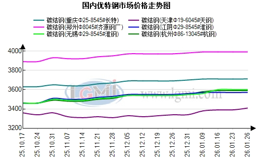 市场方面:昨日国内优特钢市场全域维持平稳运行,虽传统淡季效应持续发酵,终端需求释放仍显乏力,但供需弱平衡格局筑牢价格底部,贸易商心态审慎偏稳,无主动调价动作。据兰格钢铁网数据,分地区来看:华东地区无锡、杭州两大核心市场同步维稳,碳合结钢、轴承钢、齿轮钢等全品类报价坚守稳态,贸易商以“控库履约、理性接单”为操作方向,无任何让利行为,报价稳定性突出。高端品种受市场情绪温和带动,询单活跃度边际改善,交投氛围较前一日略有升温,成交全程聚焦刚需。华北、华中地区优特钢市场平稳运行,碳合结钢价格体系稳固,市场流通资源供需维持均衡,各品种代理商挺价立场坚定,无主动推涨意图但拒不让利,区域内买卖双方观望情绪有所舒缓,交投活跃度小幅回升。需求端虽受淡季制约未现实质性放量,但采购积极性较前期略有提振。终端制造企业采购严格贴合生产进度,以即时性刚需补单为主,新能源汽车零部件、高端装备制造等领域基础采购需求平稳释放,为高端品种提供支撑。综上,昨日市场稳势基础扎实,虽淡季需求仍存约束,但价格支撑充足,预计今日全国优特钢市场延续全域平稳态势。