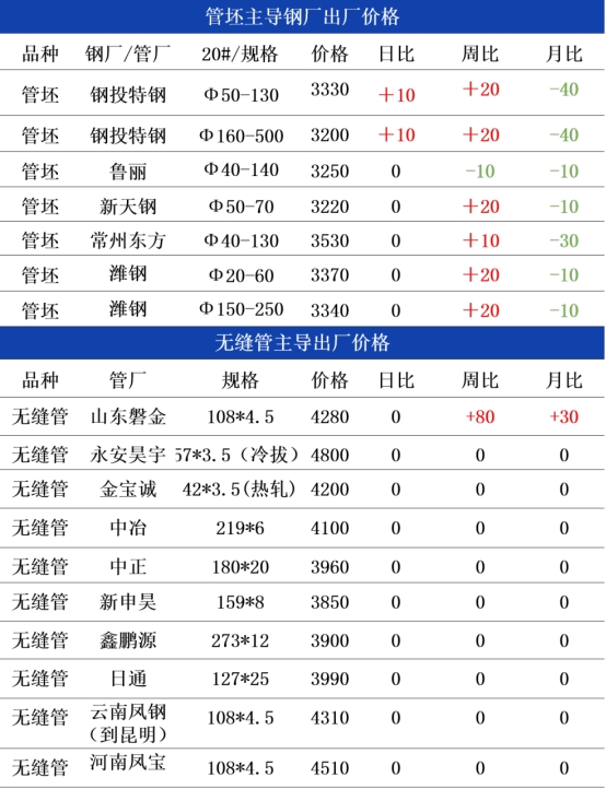 综合来看,今日管坯市场将延续成本托底、需求制约的博弈格局,价格下行压力有限,但上涨动能受下游需求疲软及节前氛围压制难以充分释放。预计今日管坯价格持稳运行为主。