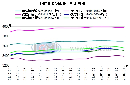 市场方面:昨日国内优特钢市场全域延续持稳运行态势,核心品种报价无任何涨跌异动,春节氛围愈发浓厚成为当前市场核心影响因素,市场交易节奏持续放缓,成交规模日益减少。整体市场情绪保持佛系基调,各类市场参与者均秉持随行就市的操作思路。据兰格钢铁网数据,分地区来看:华东地区无锡、杭州两大核心市场同步持稳,碳合结钢、轴承钢、齿轮钢等全品类报价维持恒定,无任何微调动作,当地贸易商以 “随行就市、锚定刚需” 为核心操作导向,不盲目囤货也不刻意去库,高端品种资源紧俏格局未发生改变,但受春节氛围升温影响,询单热度有所回落,交投全程聚焦下游刚需对接,无增量成交支撑。华北、华中地区优特钢市场协同持平,未出现区域分化走势,碳合结钢价格体系坚实稳固,市场流通资源供需维持均衡状态,无低价货源扰乱市场竞争秩序;各品种代理商坚守报价底线,严格遵循随行就市原则,无任何主动调整价格的行为,区域内买卖双方心态均偏佛系,无过度观望或追单动作,交投节奏平缓有序,市场运行态势整体可控。需求端受春节氛围愈发浓厚与佛系市场情绪双重影响,整体交投全程以刚需为主导。综上,目前优特钢市场持稳基础扎实,春节氛围持续主导市场交易节奏,预计今日全国优特钢市场将延续持稳运行。