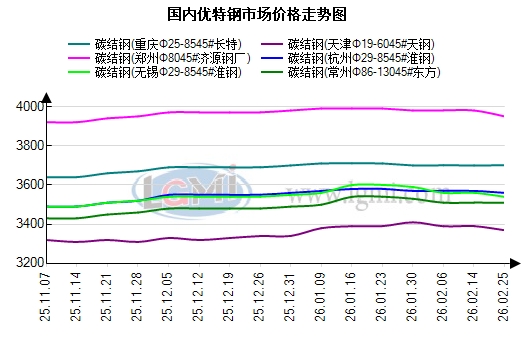 市场方面:今日为春节假期后开市第二日,国内优特钢市场维持持稳态势。黑色系期货主力合约震荡走高,带动市场谨慎观望情绪缓解。但受下游终端需求未完全启动的制约,缺乏实质性成交支撑,价格上行动力不足。分地区来看:华东地区无锡、杭州两大核心市场同步维持持稳态势,碳合结钢、轴承钢、齿轮钢等全品类报价全程恒定,无任何涨跌调整,当地商家报价心态较昨日明显好转,受期货震荡走高带动,询单热度略有回升,但受下游需求未完全启动影响,无增量成交支撑,交投全程以零星刚需对接和询价为主,商家无主动让利或推涨行为。华北、华中地区优特钢市场协同持稳运行,未出现区域分化走势,市场流通资源供需维持弱平衡状态,库存水平处于合理区间,无明显积压压力。两地商家心态随期货走高有所改善,观望情绪较昨日有所缓解,但仍保持审慎操作,区域内买卖双方博弈意愿温和。目前优特钢下游终端需求仍未完全启动,多数下游制造企业仍处于节后返岗筹备与产能恢复阶段,尚未进入正常满负荷生产状态,节前补库形成的库存仍有一定余量,暂无集中补库计划与动作。综上,当前优特钢市场仍处于节后过渡阶段,需求恢复节奏成为影响后续行情的关键。预计明日国内优特钢市场将继续维持持稳运行态势,随着下游复工进度推进,询单及成交或略有改善,但短期仍难以摆脱成交乏力、价格上行不足的格局。