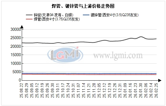 镀锌管方面,价差变化则截然不同。同期西安友发镀锌管均价报4060元,较上月微跌10元;而其原料天津锌锭均价大幅下挫至24500元,较上月暴跌1250元。尽管镀锌管价格仅出现小幅跟跌,但原料成本的急剧塌陷,使得管厂理论上的加工利润空间急剧扩大。然而,这更多是成本端的剧烈波动所致,而非下游需求向好推动。市场实际处于有价无市状态,尤其是在月底,受春节因素影响,市场参与者多在陆续返程,实际成交寥寥无几。