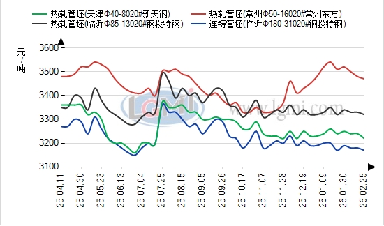 管坯:昨日管坯市场成本支撑稳固、报价持稳运行,与无缝管联动趋强,前期波动收敛。华东、华北20#热轧管坯主流报价3320-3460元/吨,临沂钢投价格上调20元,常州东方、华北新天钢等主流钢厂报价维稳,区域价差合理,无明显套利空间。下游管厂开工率偏低,采购积极性偏弱,多以消化厂内库存为主,仅少量按需补库,成交延续清淡。供给端部分中小钢厂尚未复产,大中型钢厂开工平稳,库存无明显累库压力,供需维持弱平衡,贸易商与钢厂挺价意愿较强,预计今日管坯价格偏强运行。