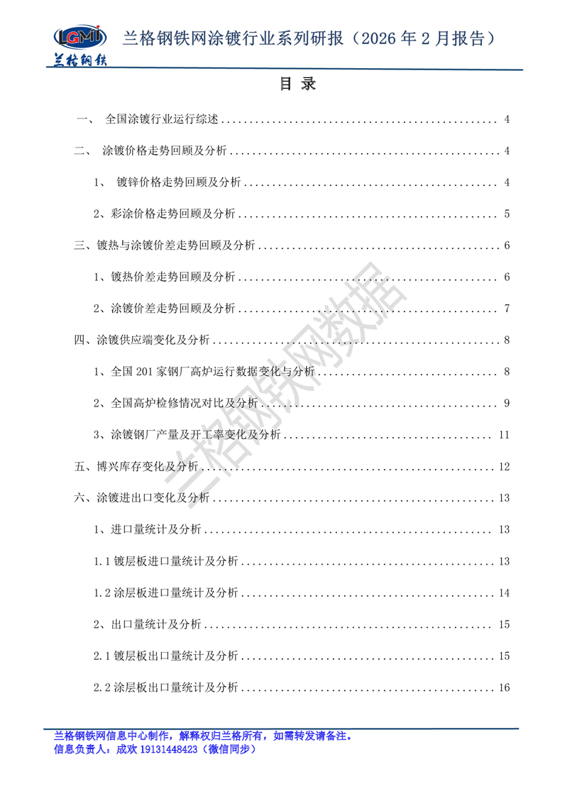 兰格钢铁网涂镀市场系列研报(2026年2月报告)