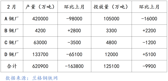 湖南区域四家建材主流供应钢厂产量环比降幅明显。预计三月份,下游需求逐步启动,钢厂对长沙地区正常投放,社会库存累库或放缓。