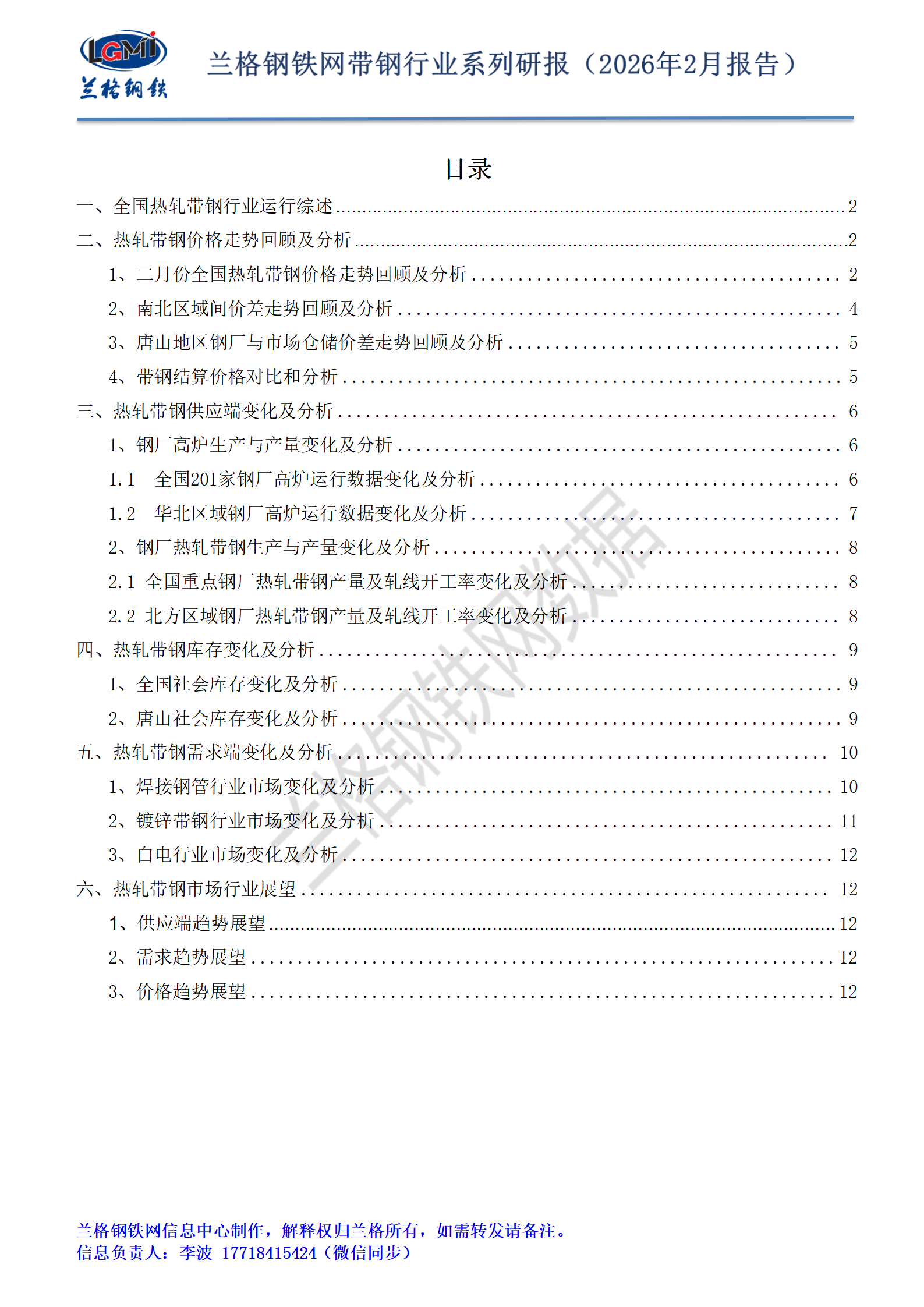 2026 年 2 月热轧带钢月度研报,深度解析供需博弈中的价格波动与产业痛点。6 大核心章节贯穿价格、供应、库存、进出口、需求全链条,纵览月度关键数据,前瞻 2026 年 3 月价格区间震荡、供需格局重构等核心趋势,为企业生产布局、市场决策提供权威数据支撑与专业分析参考。