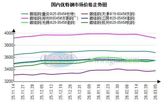 市场方面:昨日国内优特钢市场小幅趋强运行,主流品种报价稳中有升。受市场环境向好带动,优特钢市场情绪整体尚可,商家心态趋于积极,操作节奏稳健。现阶段,下游企业复工复产依旧是市场运行的核心主基调,下游制造企业复工进程持续推进,昨日终端采购出现小幅放量,成为支撑市场小幅趋强的重要动力,但整体需求仍未完全释放。据兰格钢铁网数据监测,分地区来看:华东部分核心城市报价小幅上行,其中杭州市场较前一交易日微涨10元,其余华东城市及华北、华中、西南等全国多数区域价格依旧维持主稳,无明显涨跌调整,区域走势整体协同。值得关注的是,昨日全国各地优特钢高端品种表现亮眼,轴承钢、齿轮钢等核心品类均实现高位企稳,报价无任何松动,依托高端制造领域的刚性需求,成为支撑市场的重要力量。当前市场已全面步入“金三”传统旺季周期,行业对后续需求持续回暖抱有良好预期,进一步为市场情绪提供支撑。预计今日国内优特钢市场将延续稳中小幅趋强态势,成交随复工推进进一步增加。