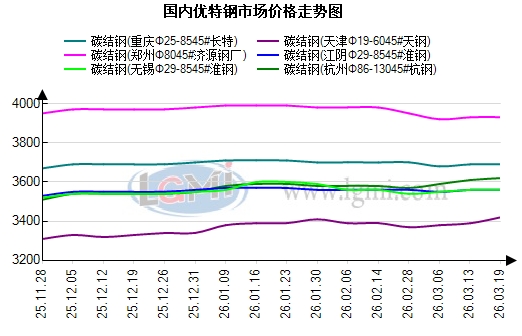 市场方面:昨日国内优特钢市场企稳观望为主,价格整体持稳运行,未出现明显涨跌波动。黑色系期货震荡偏弱运行,对现货心态形成一定牵制,市场整体交投氛围偏淡,成交较前一交易日小幅回落。下游企业依旧以按需补库为主,刚需有序释放,对现货价格形成基础支撑。据兰格钢铁网监测数据显示,分地区来看:全国各区域价格多维持平稳,区域间走势趋于一致,华东无锡、杭州、华北天津、华中郑州等核心市场报价持稳整理,商家多以稳价出货、观望等待为主,暂无明显调价动作。其余市场同步保持平稳,社会库存处于合理区间,当前供需格局虽整体偏弱,但运行节奏仍在市场预期之内。高端品种方面,轴承钢、齿轮钢高位持稳观望,在装备制造、汽车零部件等刚需支撑下,报价保持坚挺,资源偏紧格局未改,对市场底部形成有效支撑。业内对旺季后续需求回暖仍持谨慎乐观态度。综上,昨日市场企稳观望、成交小幅回落的格局,为今日行情奠定基调。预计今日国内优特钢市场继续高位坚挺运行,价格波动空间有限,下游按需采购节奏仍将延续。