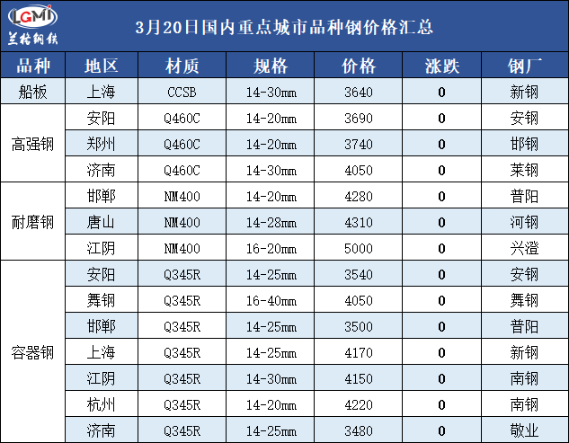 - 3月20日国内重点城市品种钢价格汇总2026/3/20