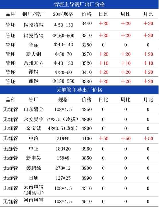管坯:昨日国内管坯市场稳价坚挺运行,成本支撑效应持续凸显,市场交投氛围平稳偏暖,核心钢厂报价小幅上调,厂家挺价意愿浓厚,暂无下调让利空间,全国管坯市场报价统一性强,下行空间封闭。原料端铁矿石、焦炭价格稳中偏强,进一步夯实管坯生产成本,钢厂盈利空间可控,挺价底气充足;供需端,下游无缝管厂开工维持高位,原料补库需求平稳释放,管厂依旧秉持按需采购、适量备货策略,避免原料库存积压,整体成交顺畅,部分中小规格管坯资源依旧偏紧,供需格局保持良性紧平衡。昨日市场无利空因素扰动,贸易商及管厂采购心态平稳,无恐慌性补库或观望惜售行为。预计今日主流钢厂稳价利好持续传导,成本端支撑不减,下游管厂刚需采购持续跟进,管坯厂家挺价意愿不变,预计国内管坯市场将继续稳强运行。