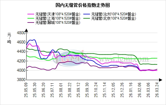 今日国内无缝管市场价格偏强运行。临沂钢投管坯价格今日下调10元,当前20#热轧管坯市场报价为3420元/吨。据兰格云商平台监测数据显示,国内重点城市108*4.5规格无缝管均价为4232元/吨,与上个交易日持平;从区域报价来看,重点市场沧州报4030元/吨、上海报4150元/吨、无锡报4160元/吨。值得关注的是,近期南北区域价差呈现小幅波动,沧州与江阴价差为110元/吨,江阴价格偏高;上海与山东价差约130元/吨,上海价格处于高位。