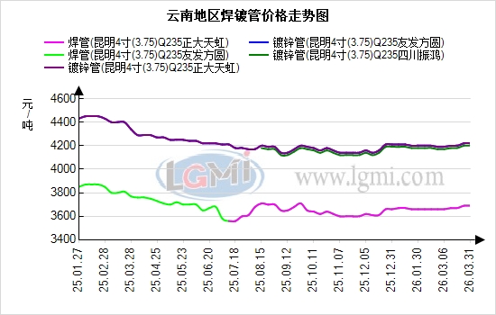 时值月末,贸易商资金压力凸显,叠加假期临近,操作愈发审慎。管厂挺价意愿未减,出厂报价坚挺,贸易商不敢贸然降价,避免引发市场踩踏和亏损,下游需求释放不及预期,商家不敢盲目囤货,多以稳价观望、对接刚需为主,综合来看,短期云南焊镀管市场将延续成本托底、稳价为主的运行格局,密切关注带钢价格走势、下游需求释放节奏及库存变化。