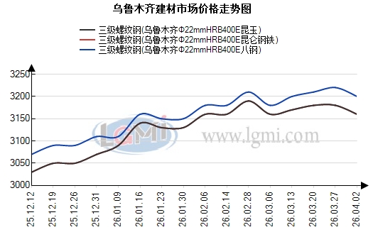 根据兰格钢铁云商平台监测数据显示,以乌鲁木齐为例,截至2026年4月2日,乌鲁木齐建材市场HRB400EΦ22mm螺纹钢八钢3200元,昆仑钢铁3160元,昆玉3160元,闽新3160元,大安3150元,新安特3150元,和钢3140元,较上个交易日持平;HB300Φ8-10mm高线八钢3400元,较上个交易日持平;HRB400EΦ8-10mm三级盘螺八钢3450元,较上个交易日持平。