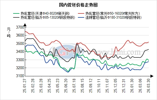 管坯:昨日全国20#热轧管坯市场主流报价持稳运行,华东、华北主流钢厂出厂价无调整,临沂钢投、常州东方、新天钢等企业报价分别为3430元/吨、3520元/吨、3310元/吨。原料端焦炭、铁矿价格偏强,为管坯提供成本支撑,管坯厂库存整体处于低位,挺价心态明确,暂无大幅调价计划。成交方面,下游无缝管市场出货持续偏弱,管厂接单清淡,对管坯采购需求缩减,多以按需少量补库为主,华东、华北管坯主产区成交普遍偏弱,贸易商出货不畅。今日早间黑色系期货延续弱势运行,管坯市场心态受盘面拖累,观望情绪进一步加重。预计今日管坯市场主流报价将继续持稳。