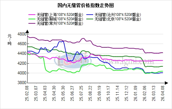 今日国内无缝管市场价格偏强运行。临沂钢投管坯价格暂稳,当前20#热轧管坯市场报价为3420元/吨。据兰格云商平台监测数据显示,国内重点城市108*4.5规格无缝管均价为4232元/吨,与上个交易日持平;从区域报价来看,重点市场沧州报4030元/吨、上海报4150元/吨、无锡报4160元/吨。值得关注的是,近期南北区域价差呈现小幅波动,沧州与江阴价差为110元/吨,江阴价格偏高;上海与山东价差约130元/吨,上海价格处于高位。