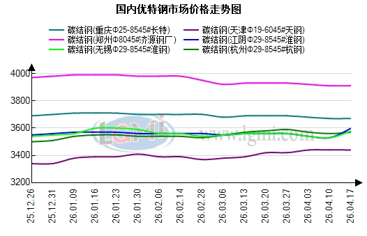 市场方面:上周六日国内优特钢市场整体稳势延续,商家报价坚守稳价基调,无明显涨跌调整,场内询盘氛围温和,终端采购以刚需为主、按需补库,整体成交不温不火,未出现明显放量或缩量态势,市场运行节奏平缓有序。据兰格钢铁网调研,主流品种价格保持平稳,区域走势无明显分化,整体呈现稳而不燥、交投平缓的格局。分地区来看,华东锡杭核心市场碳合结钢报价持稳固守,商家稳健操作、明价出货,低位让利资源持续收紧,轴承钢、齿轮钢等高端品种依旧坚挺,代理商挺价意愿未减,贸易商同步随行就市,刚需成交平稳释放但无增量突破。华北、华中地区优特钢市场稳势不改,碳合结钢报价与前期持平,高端特钢品种高位固守,区域价差合理,商家按需灵活接单,交投氛围温和清淡,未出现明显波动。综上,当前国内优特钢市场稳价基调未变,上周六日市场平稳运行、成交不温不火,买卖双方博弈趋于均衡,市场情绪理性审慎,未出现明显向好或走弱迹象。短期行情仍将以稳为主,若无突发利好或利空冲击,大概率延续平稳运行的态势。