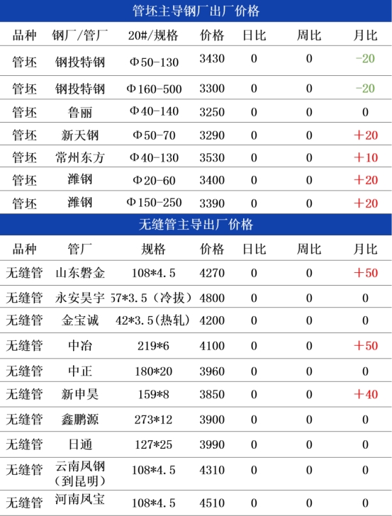 管坯:周末管坯市场报价坚挺、成交偏弱,主流钢厂报价维持高位,临沂钢投20#热轧管坯3430元/吨、常州东方3520元/吨、新天钢3300元/吨,南北价差稳定在80-290元/吨区间。管坯企业厂内库存持续低位,挺价惜售心态浓厚,虽无缝管厂采购以按需补库为主、批量采购较少,但原料端铁矿石高位震荡、焦炭提涨落地,成本支撑进一步强化,管坯价格下行空间完全封闭。预计今日管坯市场高位稳守、坚挺运行。无缝管厂采购节奏平缓,以刚需补库为主,市场维持弱平衡、强支撑格局,价格易稳难跌、偏强运行,为无缝管价格提供坚实成本托底。