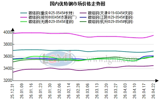 市场方面:昨日国内优特钢市场全域稳势收官,市场观望情绪小幅回温,商家报价主稳,场内询盘热度小幅回落,终端刚需拿货节奏放缓,整体成交较前日小幅缩减,交投氛围重回平和审慎。据兰格钢铁网显示,分地区来看,华东锡杭核心市场止步前一日涨势,碳合结钢资源回归稳价操盘,商家暂缓推价、守价观望,低位稀缺货源维持原有格局,轴承钢、齿轮钢等高端品种暂缓走强,代理商稳价观望,无主动调价动作,成交随大盘同步小幅放缓。华北、华中地区优特钢平稳持坚不变,碳合结钢报价持平前日水准,高端特钢品类依旧高位承压固守,区域价差维持均衡,商家谨慎操盘、静待刚需,整体交投偏淡、无异动行情。综上,当前国内优特钢市场稳价基调依旧牢固,受下游情绪影响,成交小幅缩量、市场心态回归理性,整体无利空利空施压,也无强势利好助推,商家操盘偏向保守观望。短期行情依旧以稳健持稳为主,后续需紧盯期货盘面走势与下游刚需释放力度,静待市场交投回暖。