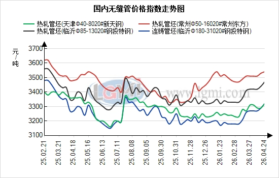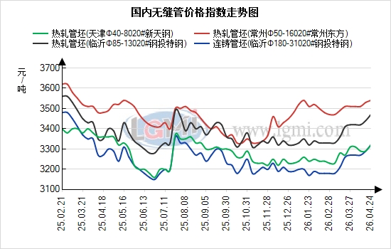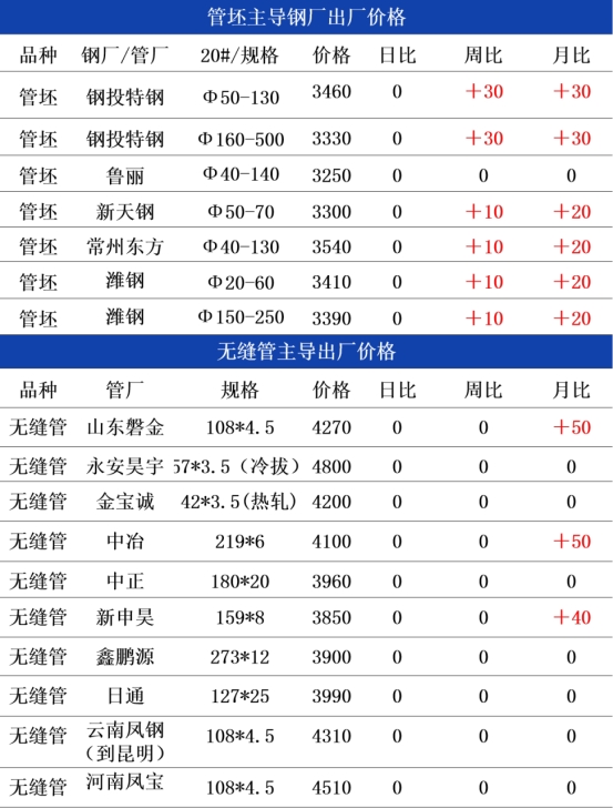 管坯:周末国内热轧管坯市场高位坚挺、局部探涨、成交偏弱,成本支撑持续强化。主流钢厂挺价惜售意愿浓厚,华东临沂钢投 20# 热轧管坯报价3460元/吨、常州东方3530元/吨,华北新天钢3320元/吨,较上周累计上调10-30元/吨,南北价差维持80-280元,区域协同性较强。下游无缝管厂高开工下刚需采购平稳,但受节前资金及库存顾虑影响,多按需小单补货,批量采购较少,成交整体偏淡。当前成本支撑强劲,管坯价格易涨难跌,为无缝管提供坚实底部支撑。预计今日管坯市场延续高位偏强态势,主流钢厂报价持稳成交仍以刚需对接为主,整体运行稳健。