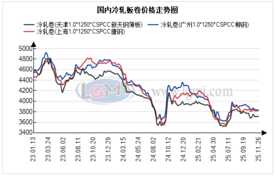 11月冷轧板卷市场处于弱势调整之中。月初期货盘面下行,原料端下跌,冷轧成本端支撑不断减弱,冷轧价格跌势[详细]